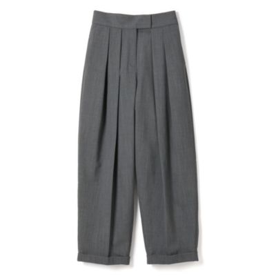 ファインウールに伸縮性のあるポリエステルをブレンドした、はき心地のよい2wayストレッチウール素材。太めのベルト芯が、ウエストまわりをきれいにホールド。すそはロールアップ仕様で、こなれ感をプラスして。