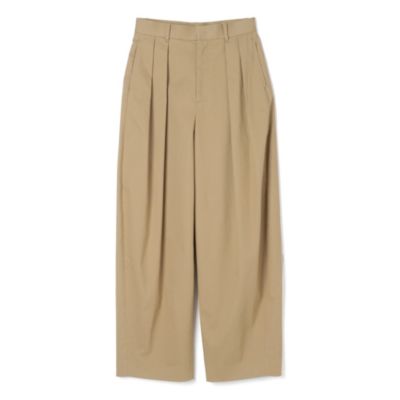 ニュアンスのあるシルエットが特徴の名品ツータックパンツを、今季トレンドのチノ素材で別注。ラフになりすぎないようにベージュの色みも厳選することで、キレイめ派がさまざまなシーンで着こなしやすくアレンジ。